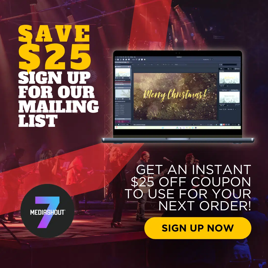 Get a closer look at MediaShout with a free 14 day trial (Windows or Mac) or a a quick no-obligation demo call.