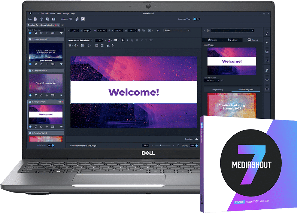 The MediaShout 7 Laptop Computer provides comfortable room to grow with premium, up-to-date components that provide everything you need for the present and future of your media ministry– with the mobility you need to run your presentations anywhere! All sales are final, your system includes a 3-Year Dell Onsite Service.